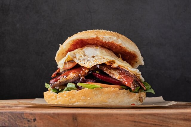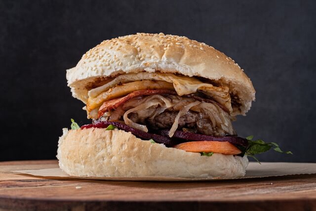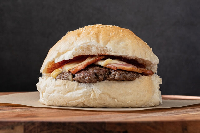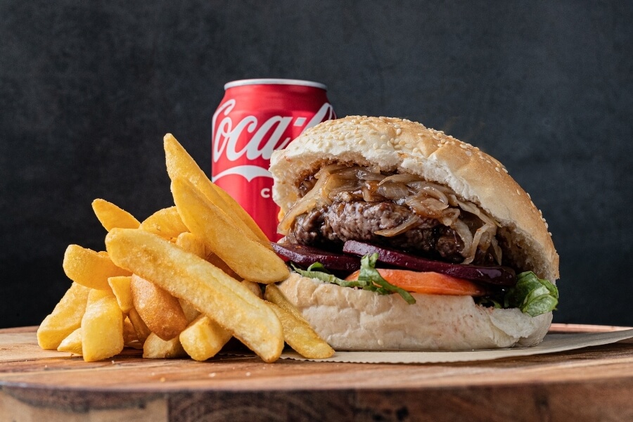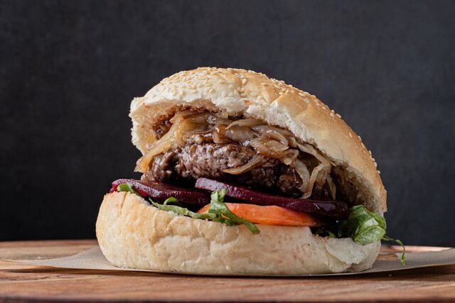 Beef patty, lettuce, tomato, beetroot, onion & sauce