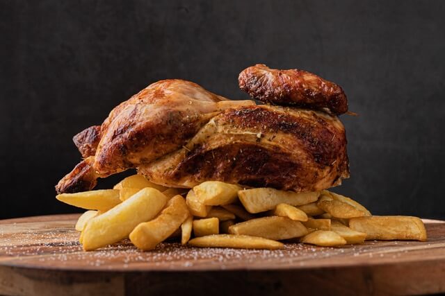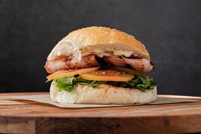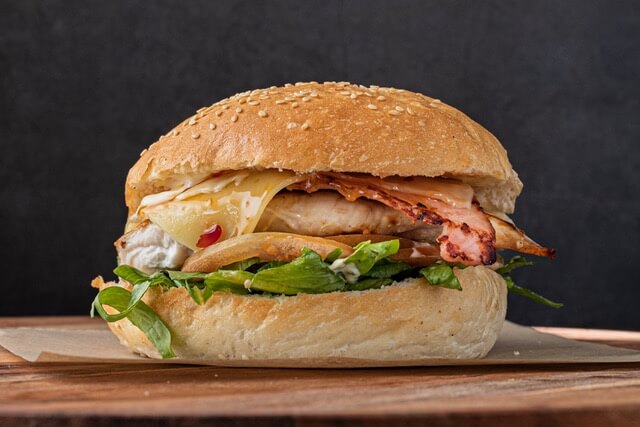 Grilled chicken, lettuce, tomato, bacon, cheese with sweet chilli & mayo