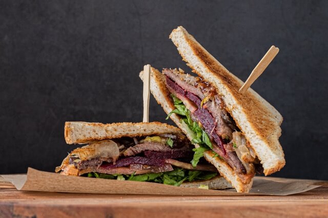 Steak, onion, lettuce, tomato, beetroot & sauce