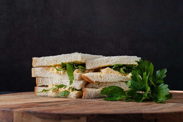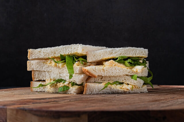 Fresh egg smashed with salt pepper and mayo topped with iceberg lettuce