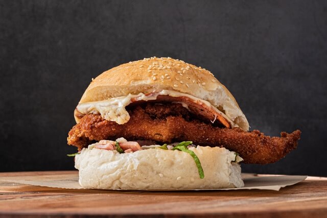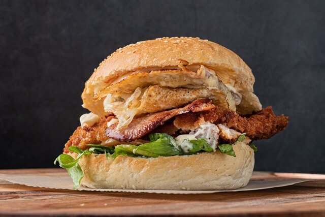 Chicken schnitzel, Caesar salad, double bacon & cheese with Charlie's special sauce