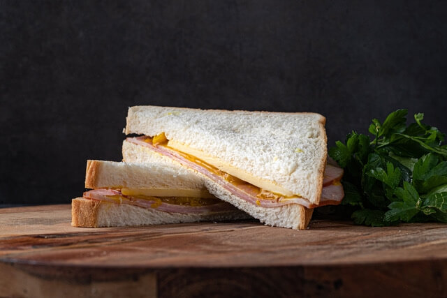 Gumpy's smoked leg ham and mixed leaves tomato beetroot cucumber carrot red onion cheese on your choice of bread & sauce