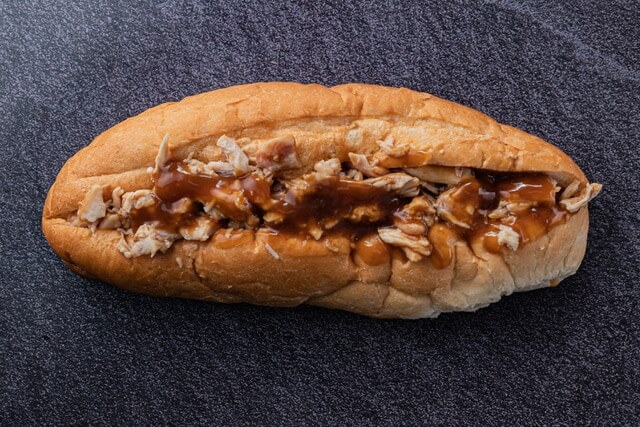 Our own roast chicken pulled white meat with your choice of bread & sauce